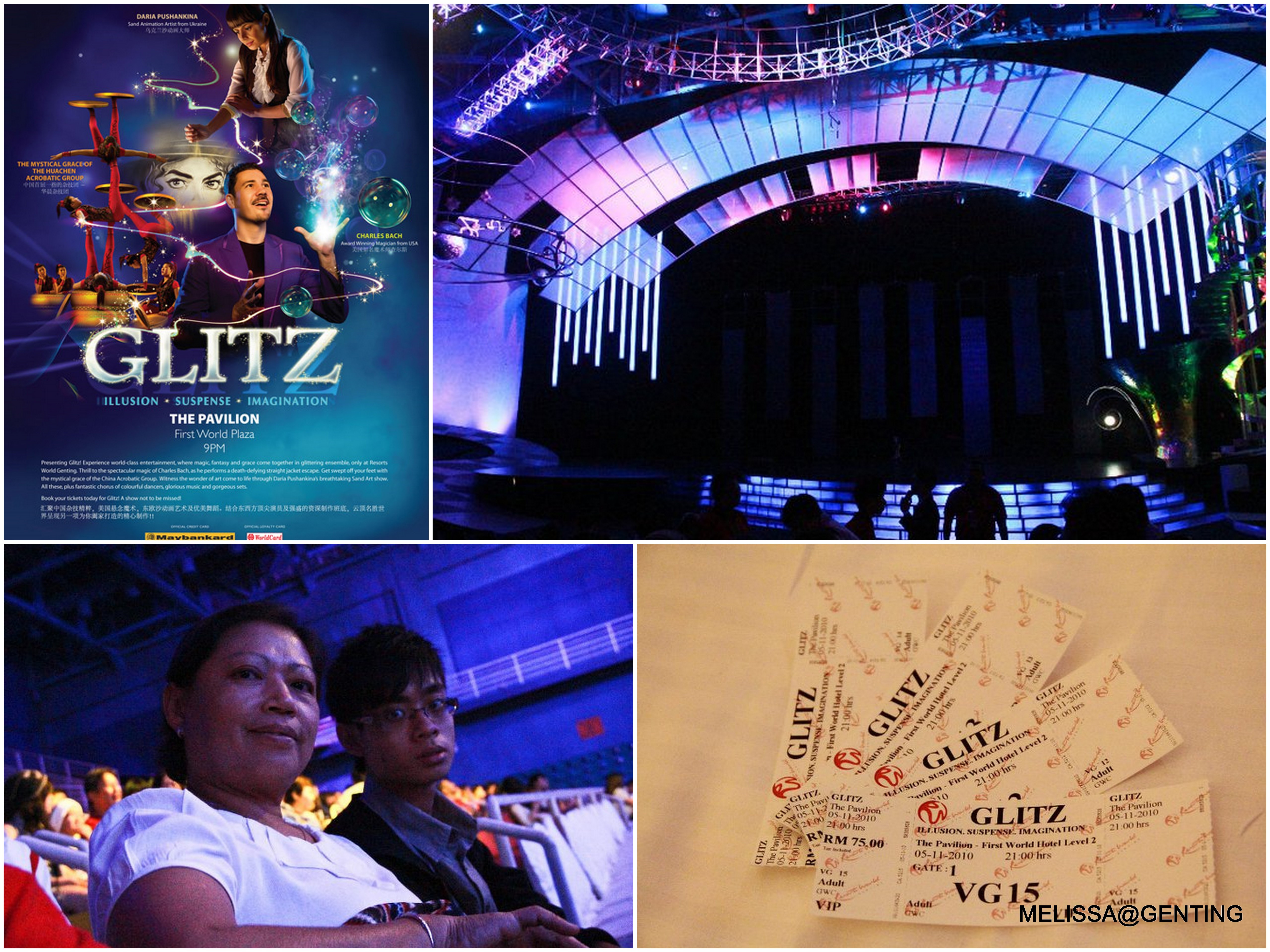 It was about 6.30pm by then. We headed back to First World Plaza for our dinner (next post). Had a nice dinner and got ready for the next schedule. GLITZ!! A Performance by several well known people; Charles Bach (Award Winning Magician from USA), The Mystical Grace of The Huachen Acrobatic Group and Daria Pushankina (Sand Animation Artist from Ukraine). What inspires me the most is the sand animation! She actually can make several arts or figures using sand. She even can do several images of our beloved Michael Jackson.