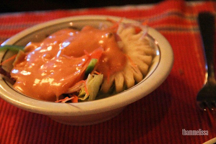 A bowl of salad upon ordering sizzling chicken