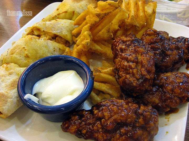 Honey BBQ Wings, Masala Spin Roll and Criss-Cut Fries served with cool lime mayo sauce.