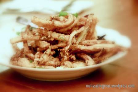 A good choice of appetizer. Deep fried eggplant or the locals usually call it ‘brinjal’. Its like a concoction between tempura and french fries. *crispy*