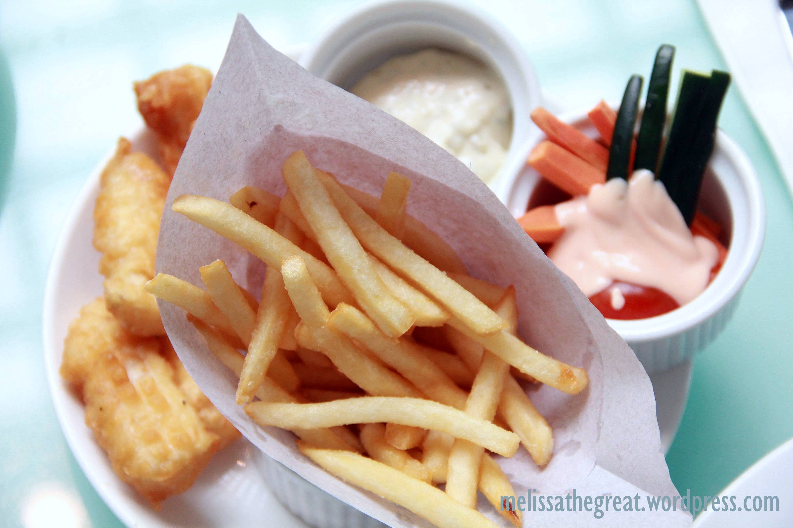 Fish & Chips (from Kids Menu) served with Carrot and Cucumber Sticks – RM12.90