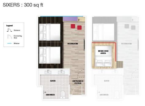 Also available is Quads rooms which have two queen-sized beds and can accommodate up to four people in an approximately 260 sq ft space. Another room option for smaller group of people.