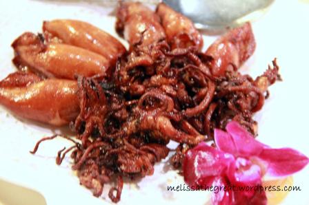 We started our meal with Kompiah as appetizer. Thin and crispy dough topped with sesame and filled with minced pork. It was served hot. Therefore it was quite good. You can eat it on its own or by dipping in the Kampung Koh Chili Sauce. Yea…Kampung Koh Chili Sauce is also a production of Setiawan.