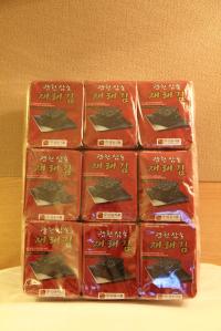 packed seaweed. each small packed weight = 4g/ 8 pc of seaweed. price = 10,000 won.
